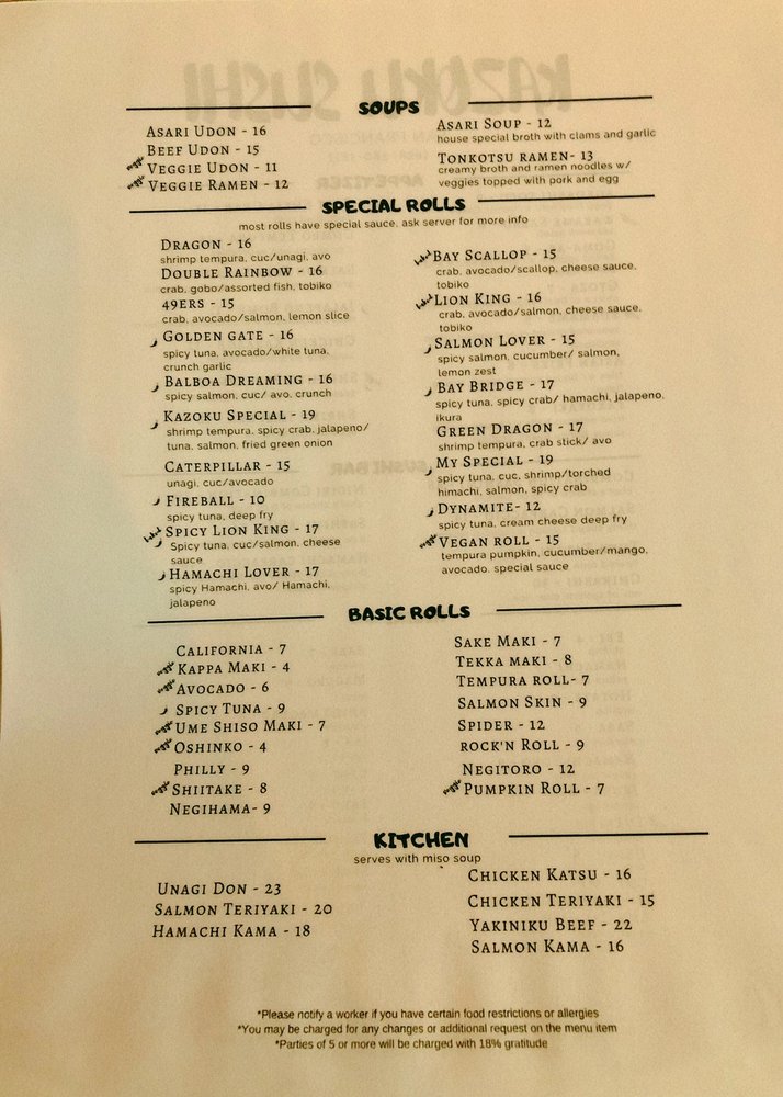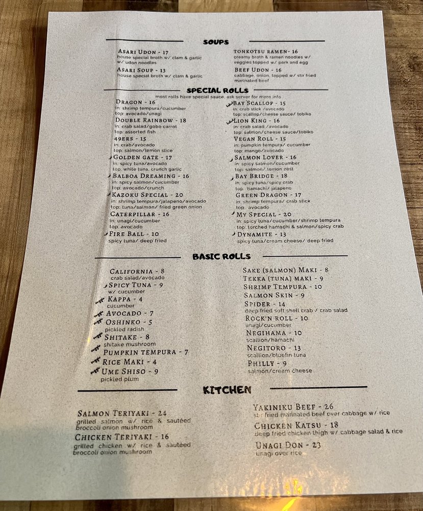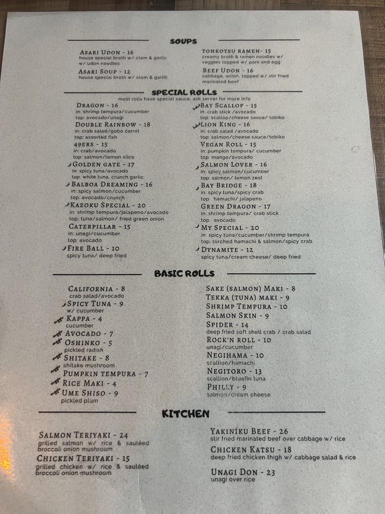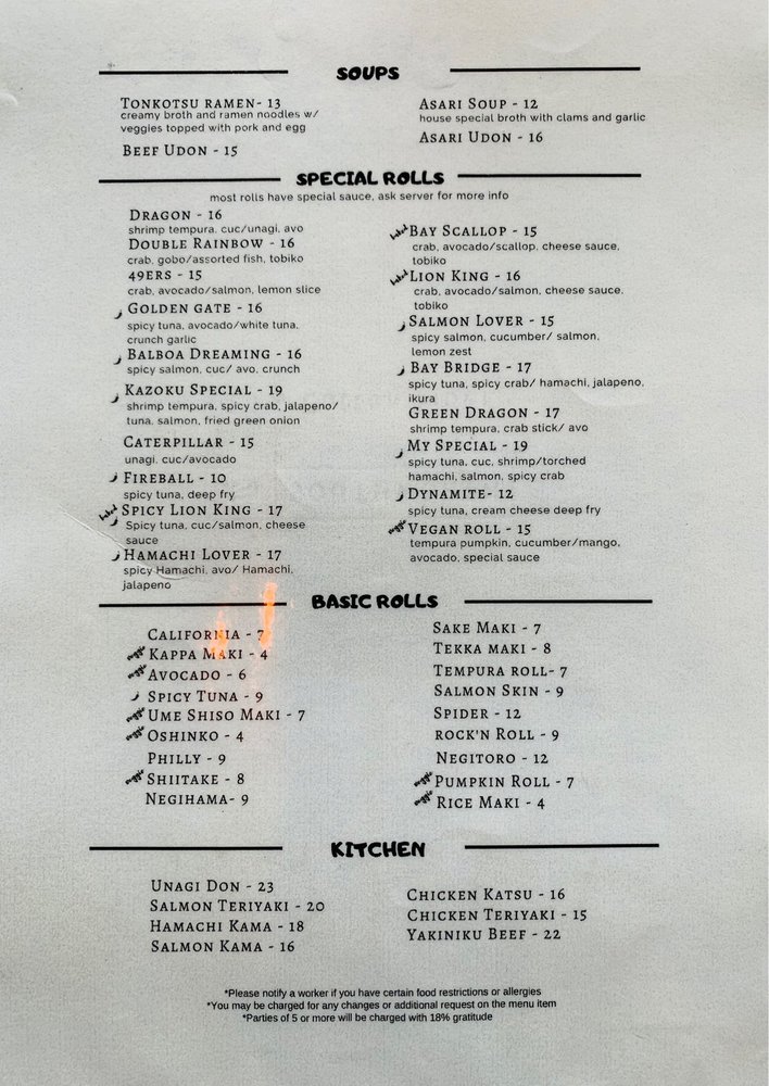 Kazoku Sushi San Francisco Menu (Update 2025)